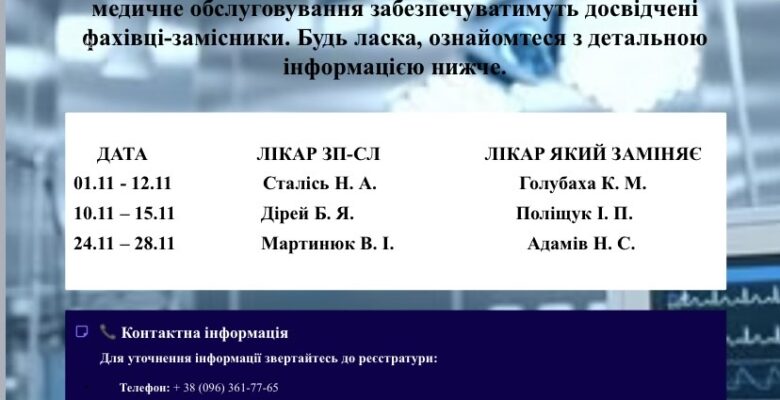 • Тимчасова заміна лікарів