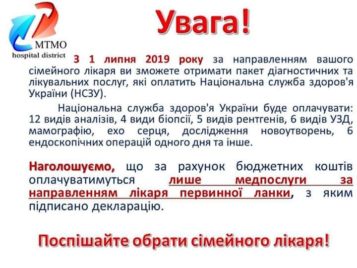 З 1 липня 2019 року за направленням вашого сімейного лікаря можна отримати пакет діагностичних та лікувальних послуг
