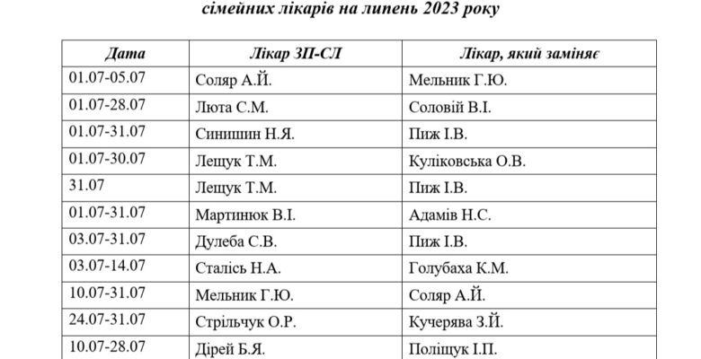 Next ArticleГрафік взаємозаміни лікарів на серпень 2023 року
